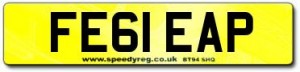personalised number plate such as FE61 EAP.