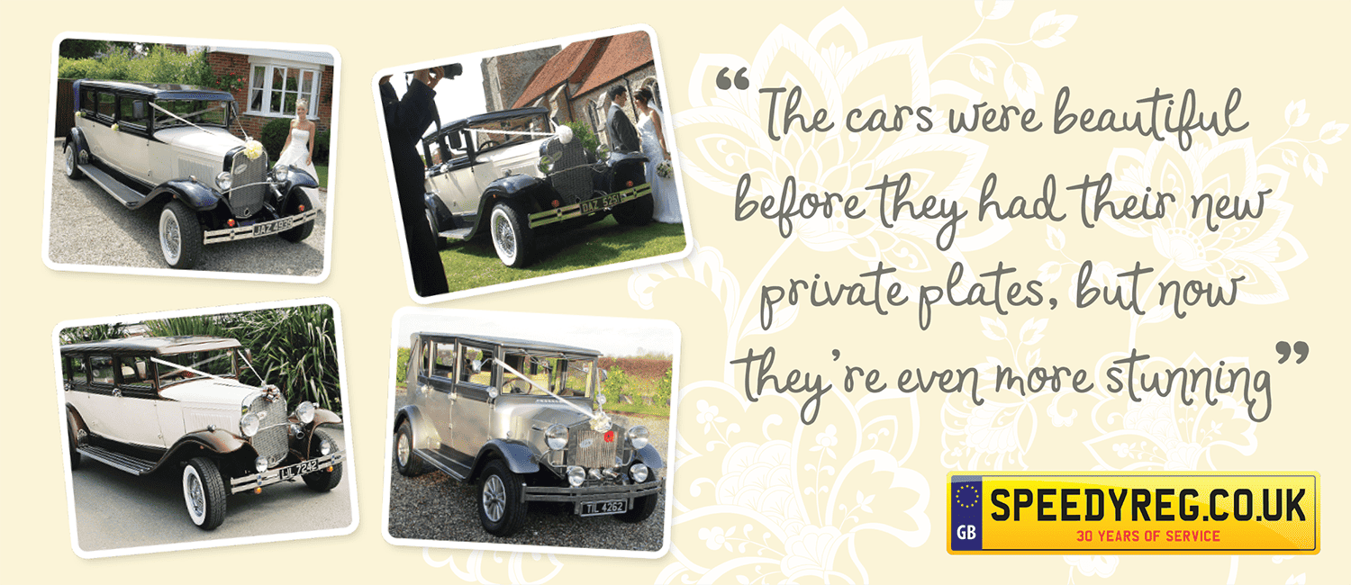 If you’re looking for a really special vehicle to transport you to your wedding in style, then do check out Vintage Dreams if you’re in the Essex or Suffolk area. When Mr A Emberson came to us for private plates for his wedding cars, we were overjoyed to help with such a fun venture.