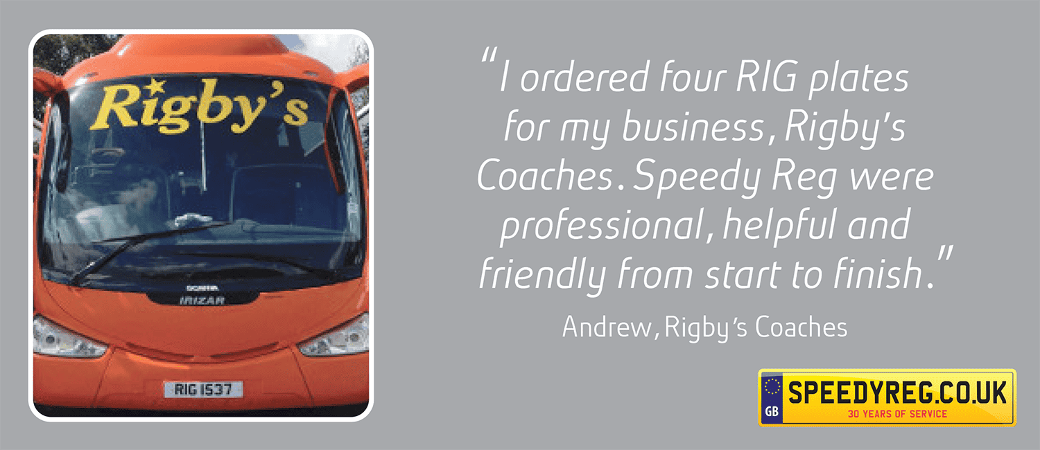 I ordered four RIG plates for my business Rigby’s Coaches. Speedy Reg were professional, helpful and friendly from start to finish”