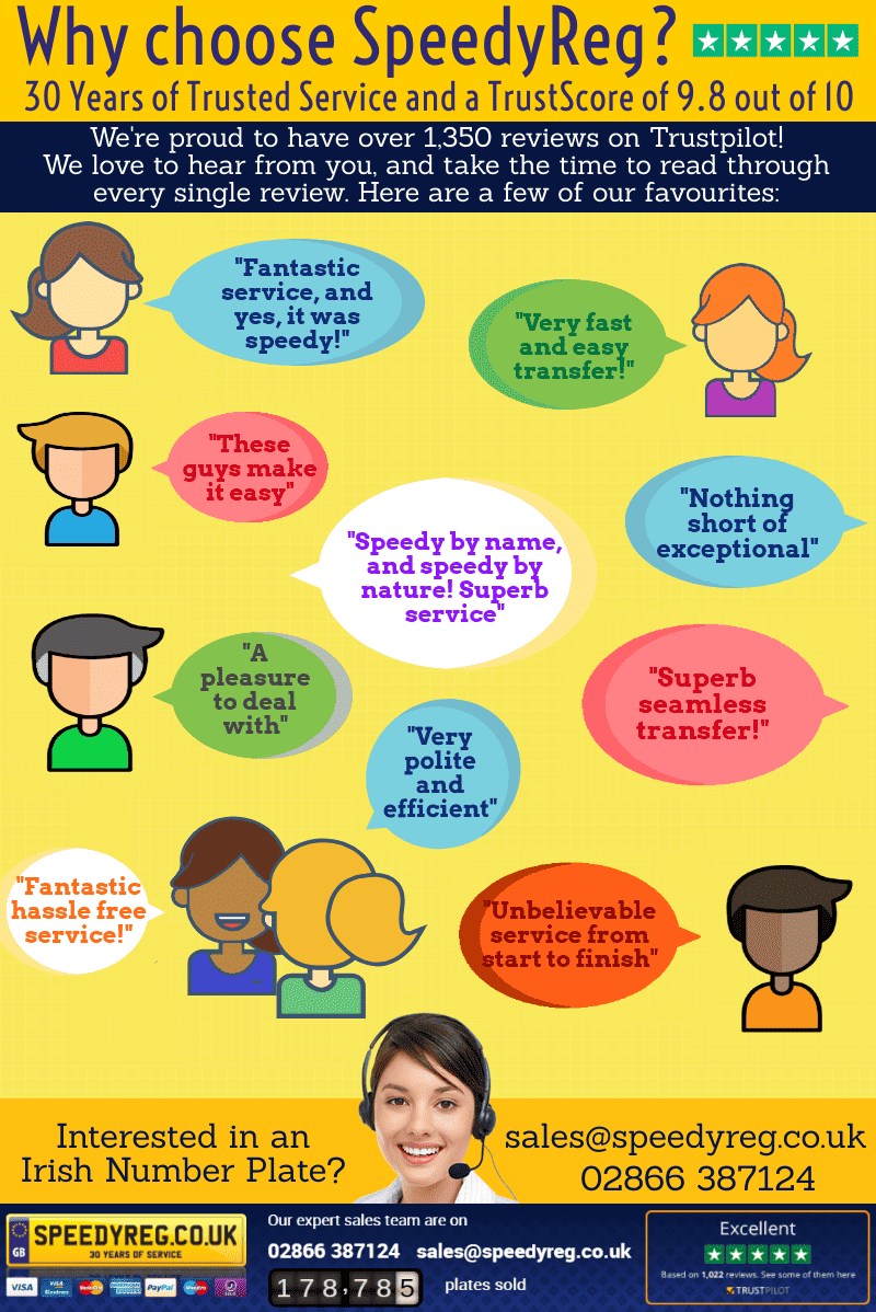 We take great pride in offering a high level of service to each and every customer. If you’re happy, we’re happy. You buy your plates, it all goes through smoothly, and then we just hope that you’ll remember us down the line when you fancy a change of plate, or think of us when someone asks where you got your plate from. We know you’re busy, you want to be out and about showing off your new plates! So that’s why we’re extra grateful when you take the time to leave us a review on Trustpilot. It really does mean a lot.
